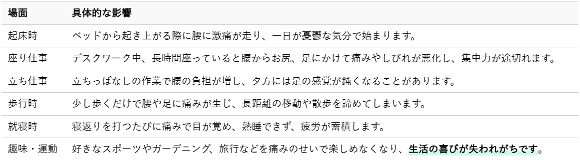 1.1 椎間板ヘルニアの痛みがもたらす日常生活への影響